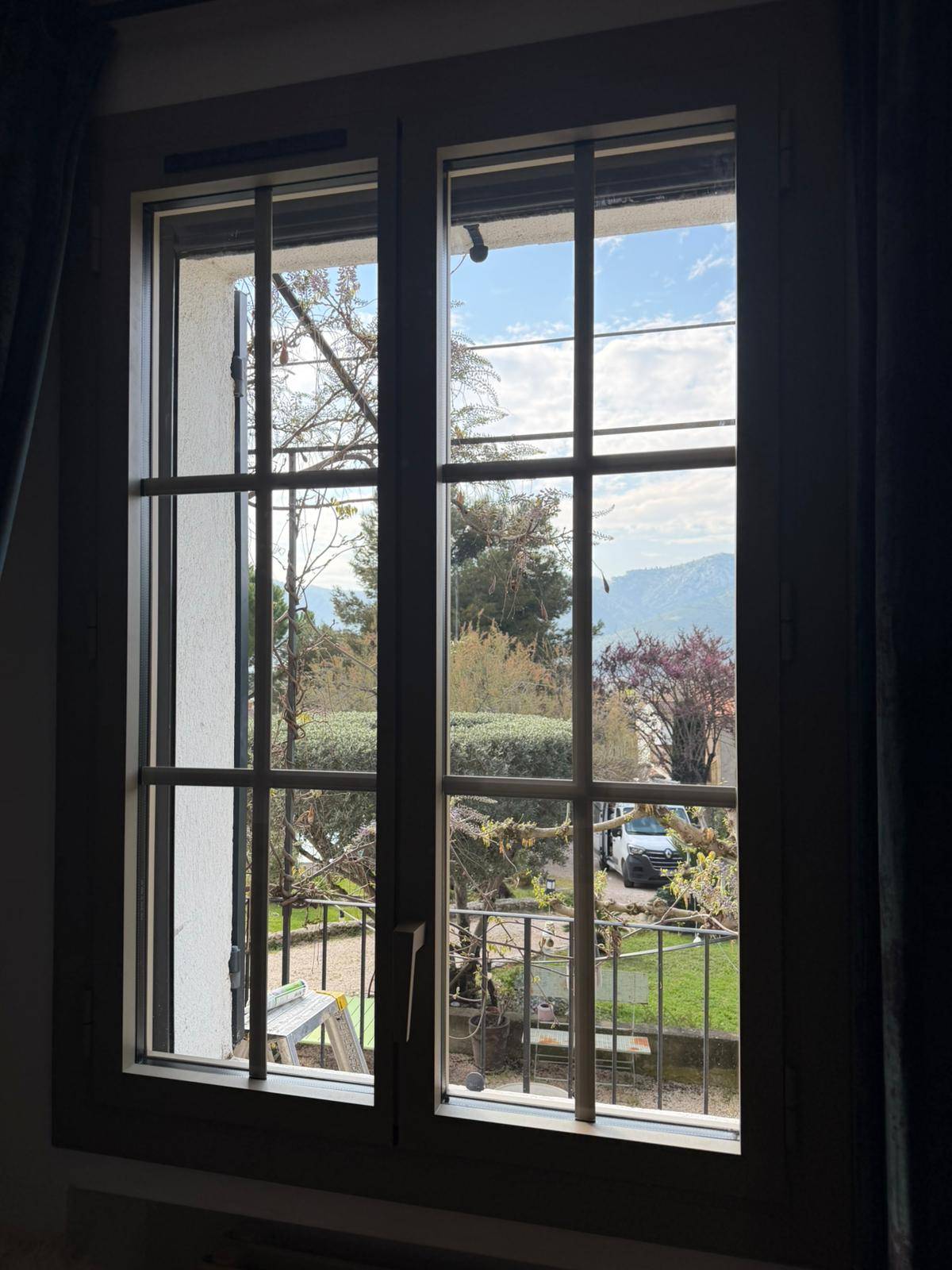 Nos techniciens salariés ont assuré une étanchéité parfaite et une isolation renforcée grâce à un double vitrage isolant dernière génération. Comme vous pouvez le voir sur nos photos de chantier, le rendu final apporte un cachet incomparable à la façade tout en offrant une vue imprenable sur le Pays d'Aix.